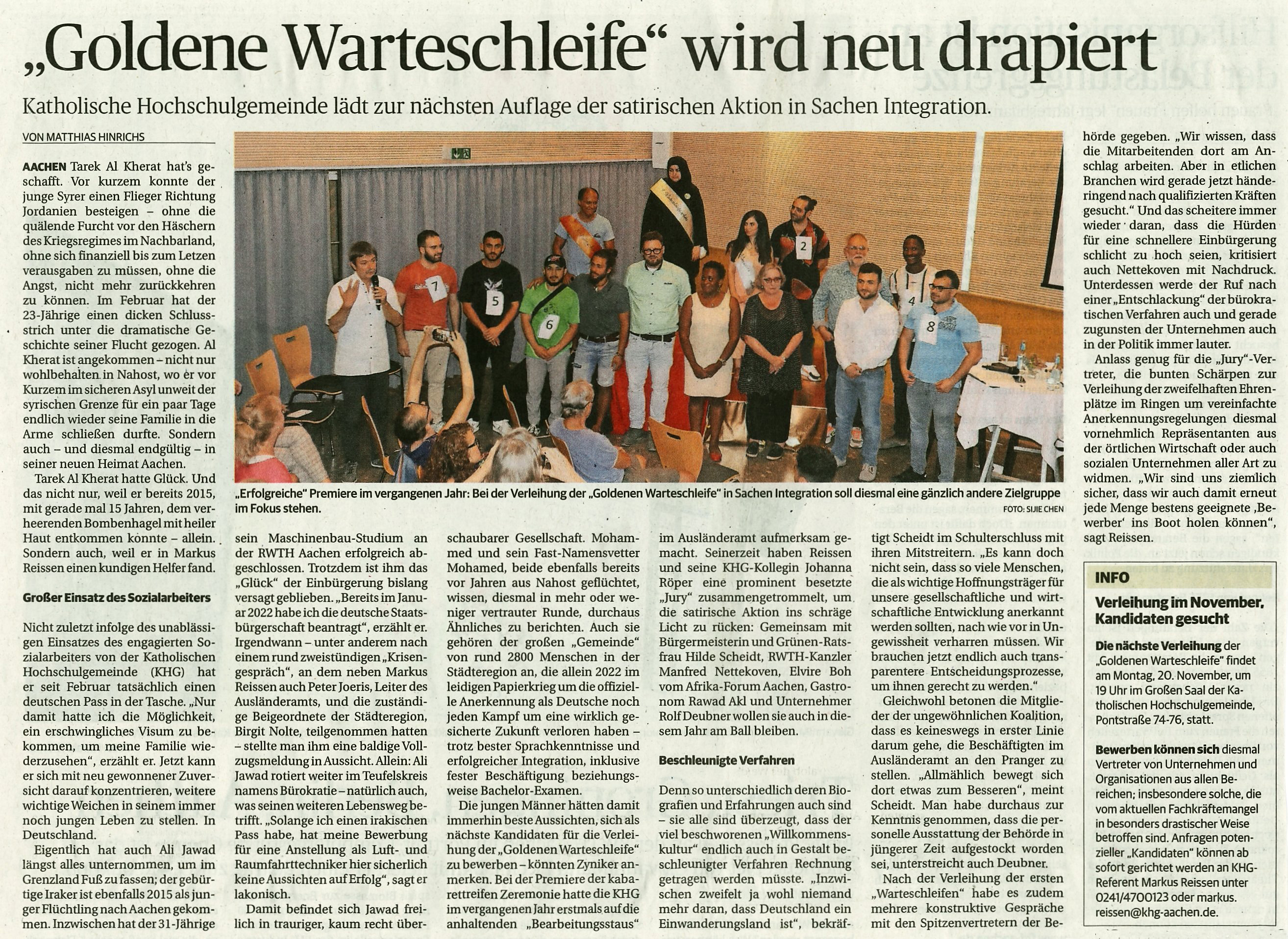 Aachener Institutionen, Behörden, Einrichtungen: u.a. Jobcenter der StädteRegion Aachen, Integrationsrat der Stadt Aachen, Feuerwehr der Stadt Aachen